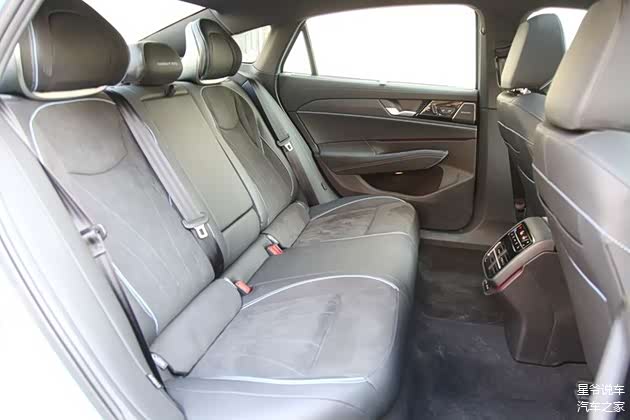 带有杯座和储物槽的后排中央扶手,也是标配。尺寸方面,后排宽1410毫米,高940毫米,椅面进深495毫米。