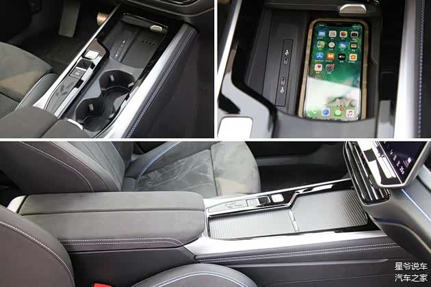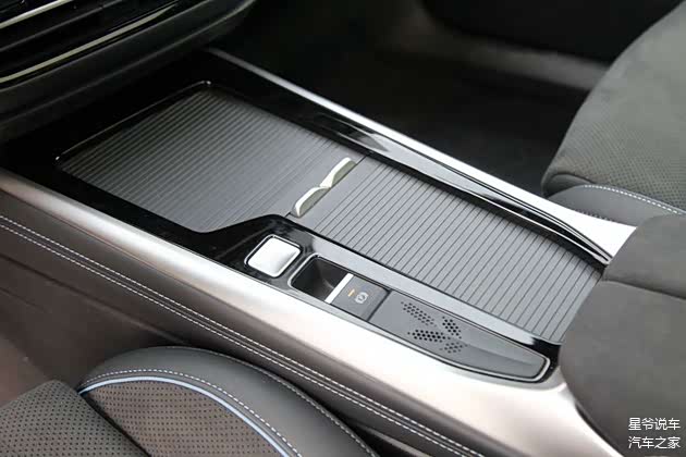 中央扶手也用翻毛皮包裹,对开,里面布置着12伏电源和香氛装置。