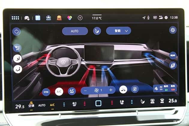 由于取消了中控台上的实体键,空调操作主要依靠屏上触摸,当然,也可以用语音操作。