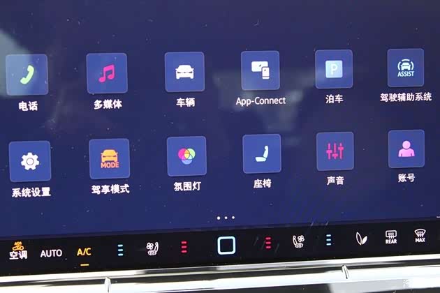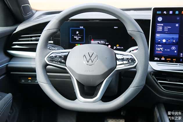 方向盘上的操作键,依旧是触控式,初次使用感觉很不方便,需要有个适应过程。去年在德国参观大众汽车公园时,看到多数新车的方向盘都已改成实体键,咱这儿也能这么做就好了。