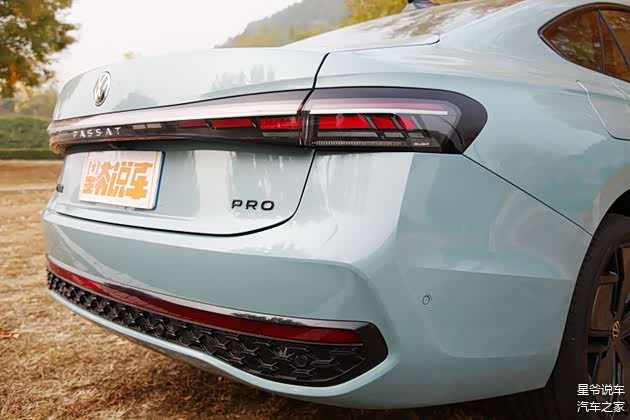 尾灯采用贯穿式,帕萨特的英文车标PASSAT位居中央,不过,我认为点亮之后的效果更加精彩。