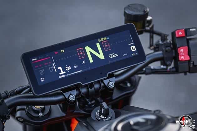 990 Duke R灯光系统采用了全新家族化风格元素,造型犀利的前大灯组,独特分裂式设计配合堆叠式的远近光大灯组,提供了出色的照明效果,为夜间行驶提供了充足的保障。值得关注的是全新的机车机系统,新车配备了全新8.8英寸TFT全彩液晶触摸屏仪表,不仅显示清晰、操作便捷,还支持智能手机连接和屏幕导航功能,让骑行者在享受驾驶乐趣的同时,也能轻松掌握路况信息。