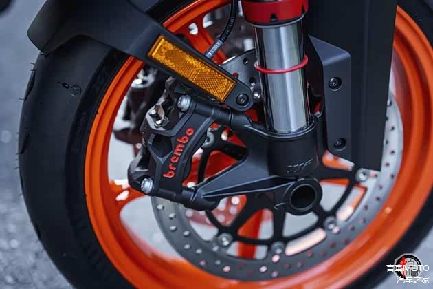 硬件方面,990 Duke R 减震系统采用 48mm WP APEX 完全可调倒置前叉和全新设计的多连杆结构中置后减震。减震刚性提高了 34%,为骑行者带来了更加精准的操控感受。刹车系统,采用前后盘刹,前320mm双盘+Brembo Stylema径向四活塞卡钳和后240mm单盘单活塞卡钳,同时,新车还配备了米其林 Power Cup 2 轮胎,这是针对赛道使用进行了优化的街头合法轮胎,与其运动性质相得益彰。