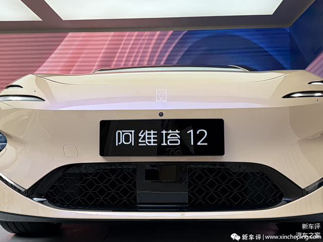 阿维塔12增程版与纯电版相比,在外观上并没有发生太大的变化,只是在前保险杠下端的增加了菱形网状进气口,用于发动机进气。