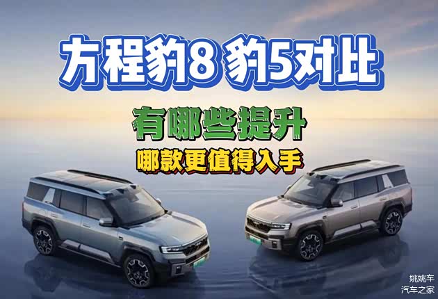 方程豹豹8比豹5,有哪些提升,哪款更值得买。今天一次给你讲清。首先,最为重要的就是价格提升,豹8入门版为37.98万,豹5入门版价格25.98万起。整整贵了12万。这12万,都贵在了哪里,我们来一一拆解。