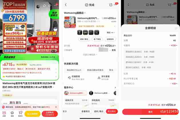 此文非广,可能算是吐槽文,和大家分享一下最近购买的能效22kw充电桩——汗青HQ22B的使用心得和安装感受,主要是说一下22kw充电桩是否适合每个电车家庭,性价比到底如何。家里两台电车,红旗E-QM5只支持直流充电,原有的7kW交流充电桩用不上,所以趁着双十一,在京东入手了这款22kW的直流充电桩。指导价格6799元,双十一优惠叠加京东券,晒单返100元E卡,最终到手价5626元,但是说实话,有些后悔了,后文会说到。