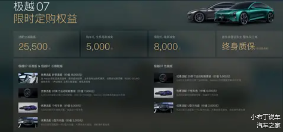 综合来看,极越07相较于极氪001在智能驾驶技术上表现出更为成熟和稳定的特点。此外,极越07的价格相对较为实惠,使其在20万元以上的纯电轿车市场中显得尤为抢眼,因此无疑成为了更为理想的选择。目前,购买极越07还可享受多重优惠,包括终身质保、5000元的购车礼、8000元的保险礼以及选配最高可减免2.55万元的福利,这些优惠无疑使得现在成为入手的最佳时机。