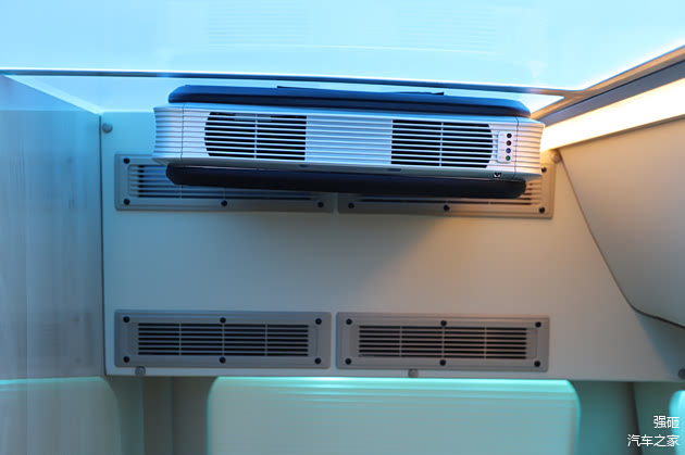 车尾顶部安装空气净化器,还有单冷驻车空调,加上驻车柴油暖风机,可随时调节车内温度。