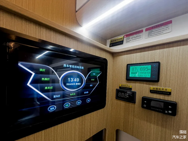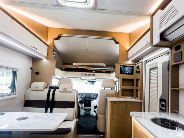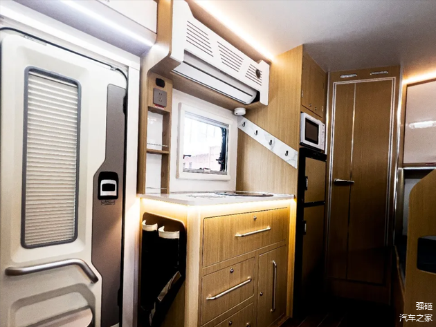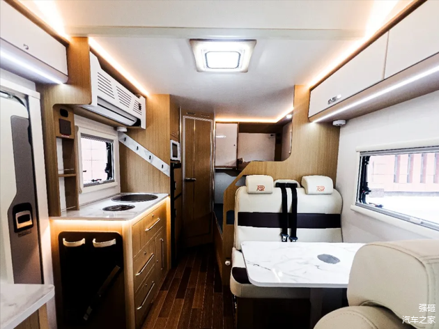 车内部分,整体给人一种富丽堂皇的感觉,尤其是内部的灯光和生活主体配色的设计,巧妙搭配,柔和而温馨,仿佛点点繁星洒落在车内,让人仿佛置身于高档公寓之中,尽享舒适与惬意。