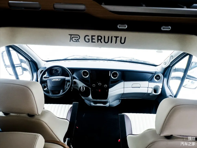 车头驾驶室,与生活舱贯通,可以看到内部也做了软包覆,使前后的风格高度统一。