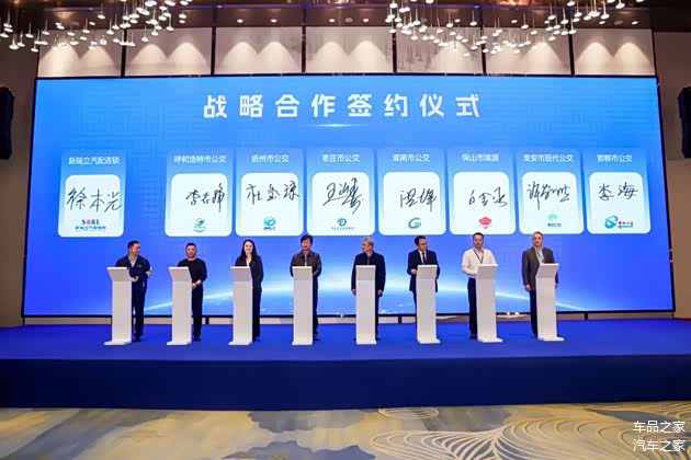 随后举行协同发展集中签约仪式。呼和浩特市公共交通有限责任公司、扬州市公共交通集团有限责任公司、枣庄市公共交通集团有限公司、淮南市公共交通有限责任公司、保山市瑞源投资有限公司、淮安市现代公共交通集团有限公司、邯郸市公共交通集团有限公司,与新瑞立汽配有限公司共同签约。