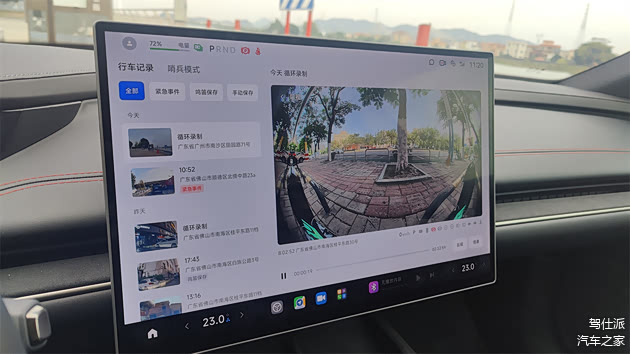 行车记录仪的功能丰富度很高,最高可以支持四路录制,包含了前方的主摄像视角、后方视角以及两侧翼子板的视角。而且录制之后各路视角可以独立查看,共用一条时间轴线和各路车控信号的水印,支持倍速调节,还带有地理位置的标签。