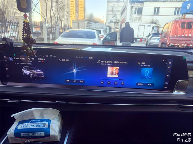 好在等待时间不长,前面有三四台车,我们就在这里,暖和的等候,该说不说,锐界L这27英寸的4K大屏太爽了,清晰度高,操控丝滑,流畅,集成功能还多,听会音乐,看会文章,一会就到我们了