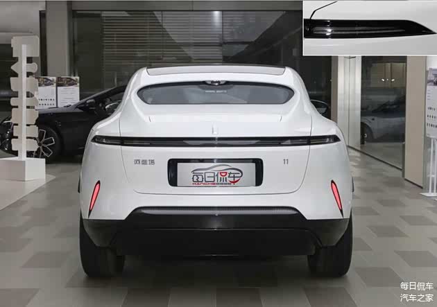 车尾造型很有特色,车身腰线上提,与下压的顶线融合,尾窗被压缩的扁平。贯穿式尾灯结构纤细,刹车灯是中央点亮式,提醒效果也不错。倒车灯隐藏在两侧出风口造型内,黑色包围上方还有横向灯带。提供可自适应升降的帆式尾翼,车速超过90km/h时会自动打开,低于60km/h时自动关闭,非常带感。