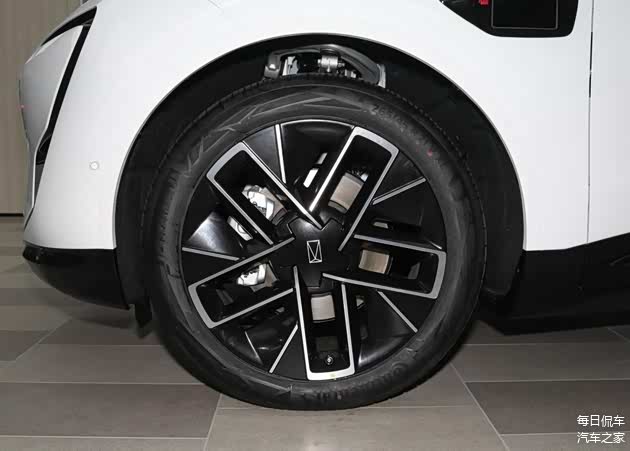 增程车型提供21英寸轮圈,5个镂空矩形的条幅也很有设计感。轮胎规格为265/45 R21,匹配马牌Contact 6系列产品,有良好的抓地性和静音性。