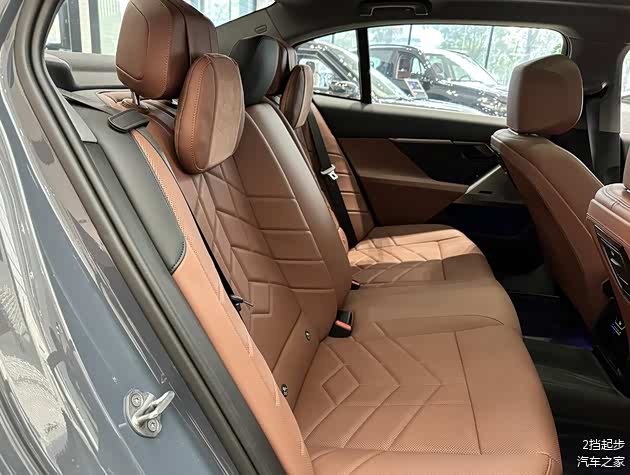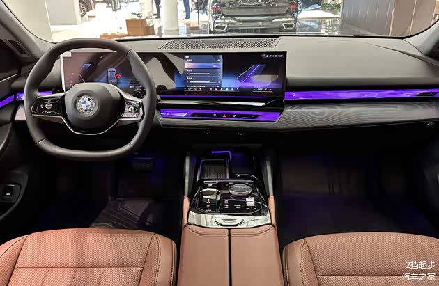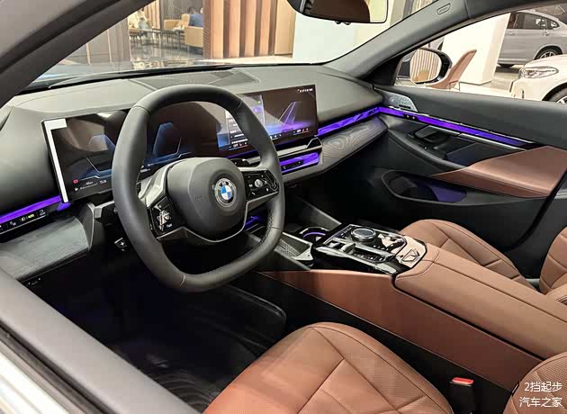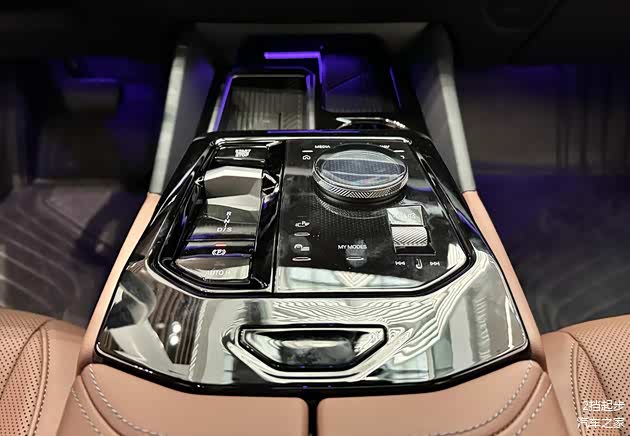 新车的内饰处理的得体大方,车内的用料扎实,大部分区域采用的是软质以及皮质材料包裹,并且还配备了环抱式的交互灯带,内置了多色氛围灯,和宝马7系的处理方式保持一致,12.3英寸仪表盘+14.9英寸中控屏组成的双联屏组合强调了科技感,液晶仪表盘能够显示丰富的数据,数据的显示细腻。多功能方向盘造型圆润,两侧还配备了整齐的物理按键。操控台区域的布局合理,配备了小巧的电子换挡杆,周边还配备了整齐的物理按键以及旋转按钮。