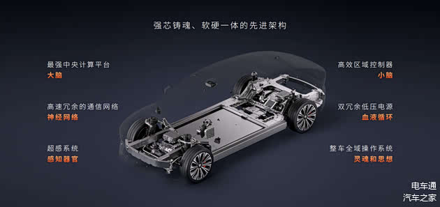 上述提到的中央计算平台、区域控制器、通信网络、低压电源,这四个方面在电车通看来更像是这套数字架构的“硬件基础”,即整车智能化的前提条件,而超感系统和整车全域操作系统,更有探索智能化上限的味道。
