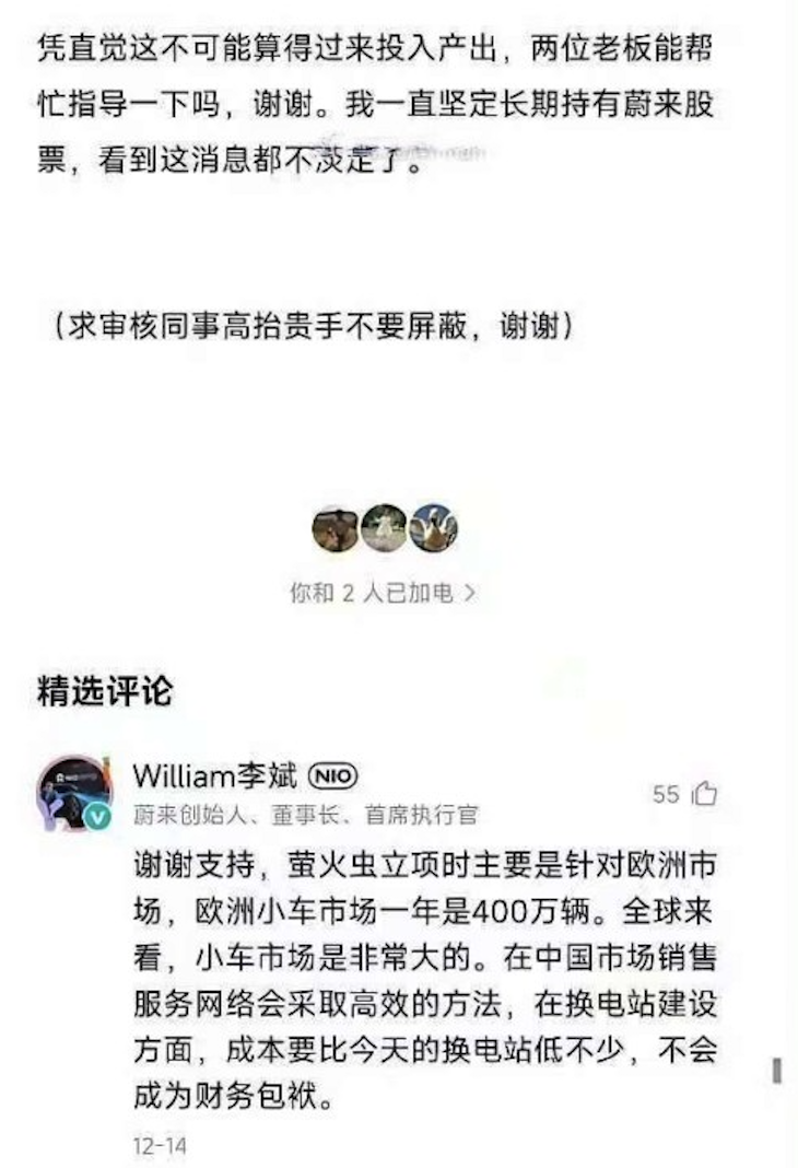 最近,有蔚来的车主同时股东发帖问蔚来为啥要做萤火虫