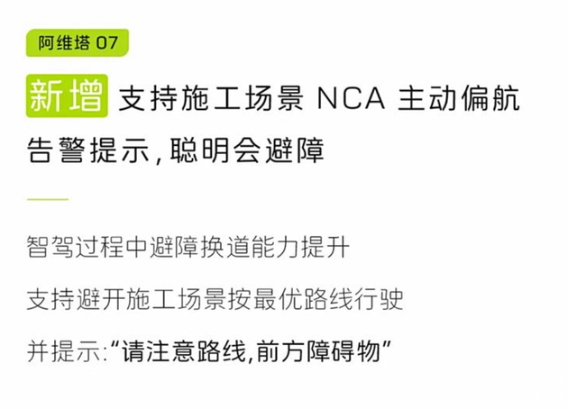 此外,智驾用户接管告警语音提示也得到了优化。新的语音提示更加清晰明了,能更好地提醒驾驶者进行接管操作。同时,新增的施工场景NCA主动偏航告警功能,能在遇到施工场景时及时提醒驾驶者,避免因未知情况导致的偏航。