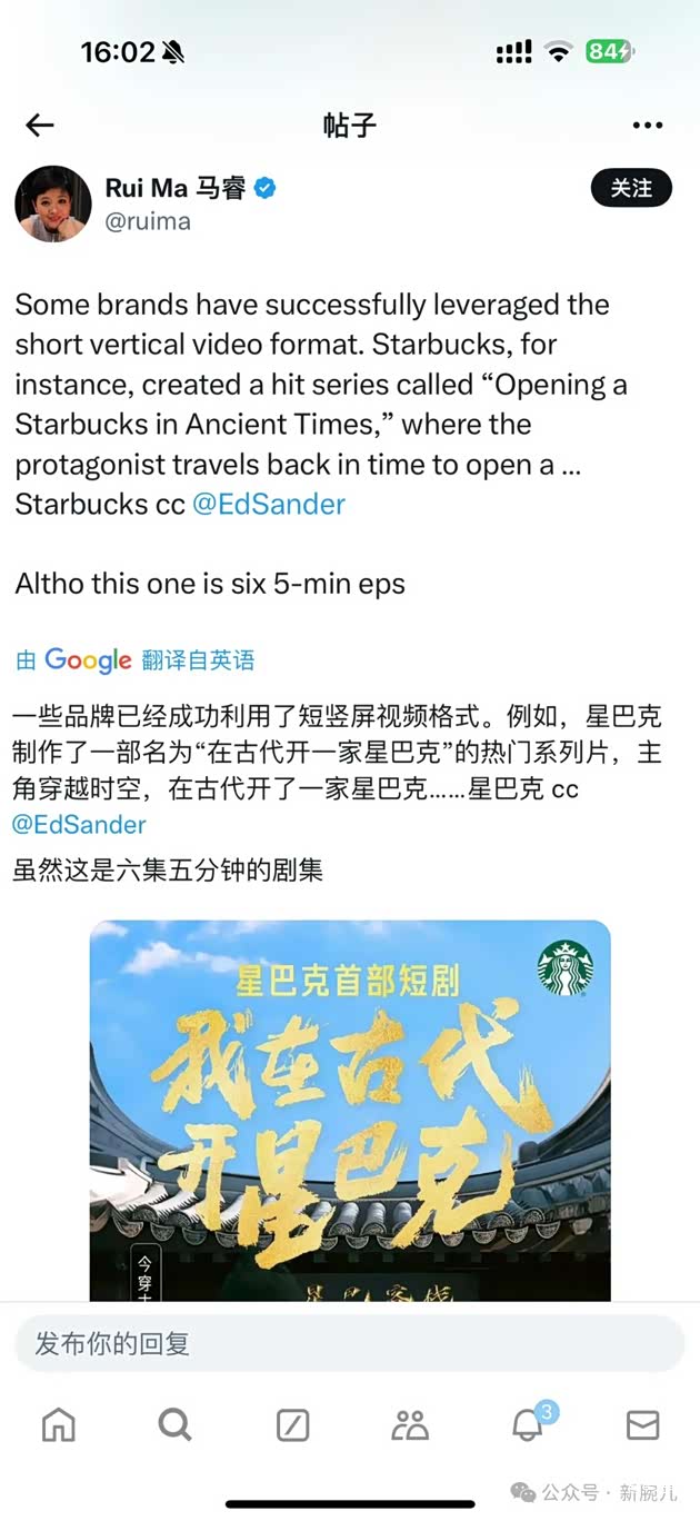 这部品牌定制剧高光了,《我在古代开星巴克》,成功利用竖屏短剧模式成为了品牌短剧的代表。