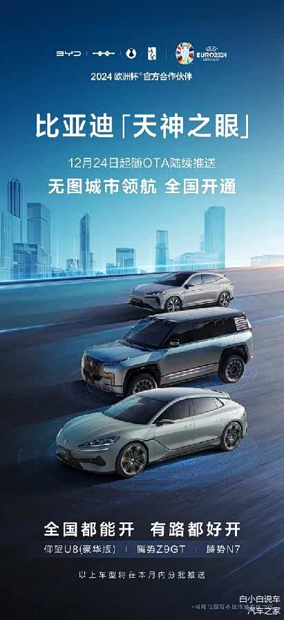 历经本次重磅技术升级,比亚迪天神之眼在辅助驾驶方面实现了显著提升,持续刷新了用户的认知。相信凭借强大的技术实力以及全面的产品布局,比亚迪天神之眼将收获更多拥趸,持续领跑销量榜单。同时,比亚迪也将继续坚持技术创新,以更加智能、更加便捷的产品,引领未来出行的潮流。同时,无论是仰望品牌的旗舰车型,还是腾势品牌的精致之作,都将为用户带来前所未有的智能驾驶体验。