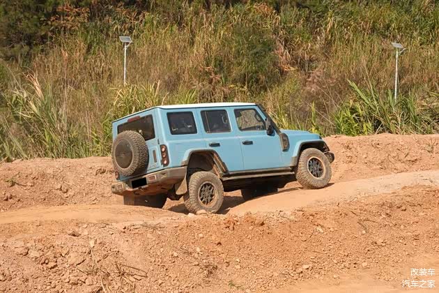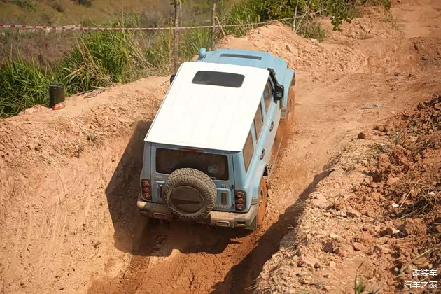 在这个时候,你就能明显感受到大减速比带来的低扭放大效果,同时油门踏板的响应足够线性,帮助你控制好车辆前进的幅度。轻点油门,在你刚感受到轮胎有些些打滑的迹象之时,动力就被电控系统迅速分配到了有抓地力的轮子上,进而轻松的通过了考验。