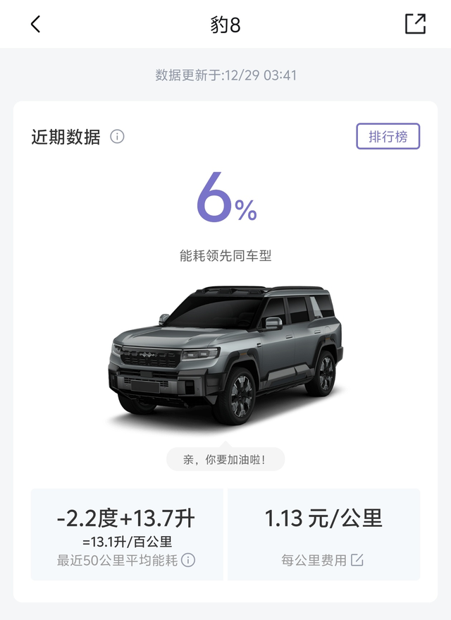 方程豹豹8的车主彦祖不懂车发贴称,最近50公里(高速+城市)油耗显示13.1升/百公里,这玩意统计的准吗?记得十年前开燃油车那会儿,我对自己的脚法其实还挺自信的9话说智驾OTA不按宣发时间推送,官方也不解释原因,让我们广大车友去为难你们一线客服,这都叫什么事?