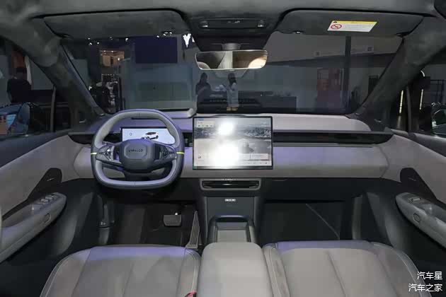我们再来看内饰设计,目前在售车型有两种配色,分别是灰色和米色,坐在车内朝前方来看属于环抱式座舱布局,中控台层次感分明,光亮材质显得有弹性,触摸按压质感不错,值得一提的是配备了无限浪潮氛围灯,由63颗LED灯珠和63颗控制芯片组成,拥有11种灯语律动效果,我们在打开音乐以后,坐在车内具备一定的动态感。