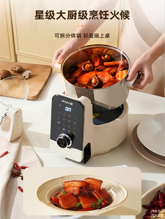 做菜的口感关键在于火候的掌控,而这恰恰是FOVS智能烹饪机的拿手好戏。其内置的4组传感器,能够进行立体温控,自动精准调节火候大小与时间长短。在炖煮过程中,火候恰到好处,将汤汁收到浓郁粘稠,不糊锅,更使每一丝肉纤维都能充分吸收汤汁的醇厚风味,炖煮出的肉质鲜嫩多汁、入口即化,轻松满足您对美味炖肉的极致追求。无论是香浓软烂的红烧肉,还是滋补养颜的红枣枸杞炖猪蹄,智能烹饪锅都能为您完美演绎,让家人赞不绝口。