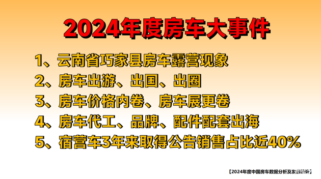 之后房车露营与自驾车分会副秘书长、路程网x房车行创始人丁宏波在会上围绕“2024年度中国房车产业数据分析及发展趋势”进行了精彩的分享。他首先为大家盘点了房车行业2024年度的十大热点事件,并表示预计2024全年中国房车注册总量约为1.88万辆,较2023年下降5.28%,下降主要集中在自行式旅居车,受宿营车(露营车)市场挤压影响,预计2024全年自行式旅居车新增注册量将相较2023年同比下降19.09%,旅居挂车小幅回暖,宿营车(露营车)热度继续并保持较快的上涨趋势。(详细内容请见后续推文)