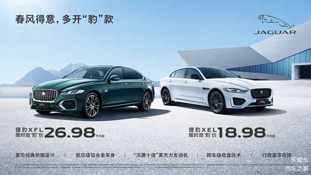 在2025年新年之际,针对捷豹XEL与捷豹XFL两款车型,于2025年1月1日至3月31日推出限时劲“豹”价:捷豹XEL价格为18.98万起、捷豹XFL价格为26.98万起。两款产品官宣限时价格后,捷豹粉丝们纷纷表示赶紧下手。因为吸引他们的不止价格,还有将梦中情车收入囊中的期待。