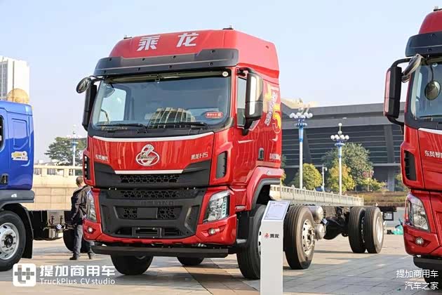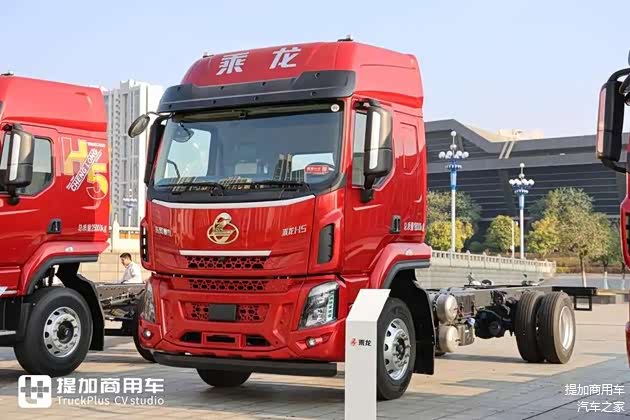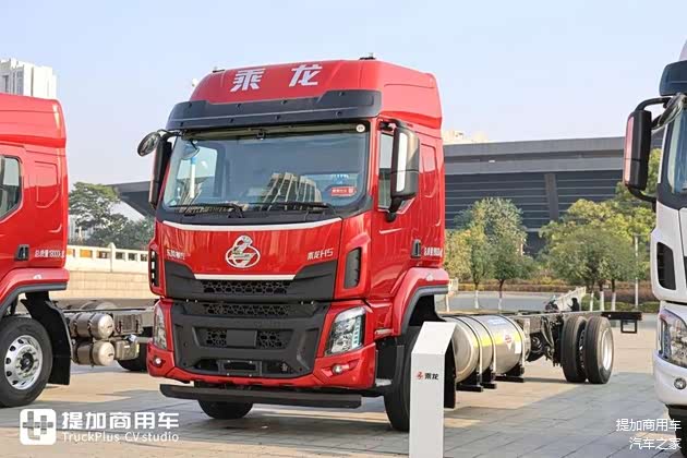乘龙H5 280马力大单桥:采用H53S进气道前置驾驶室,货箱长度可做到9米8。动力升级高端康明斯D4.5发动机,最大280马力,匹配法士特小8挡变速箱和4.11速比后桥,轴距7100mm,前铝合金轮毂,高端中短途大单桥当中的“六边形战士”。
