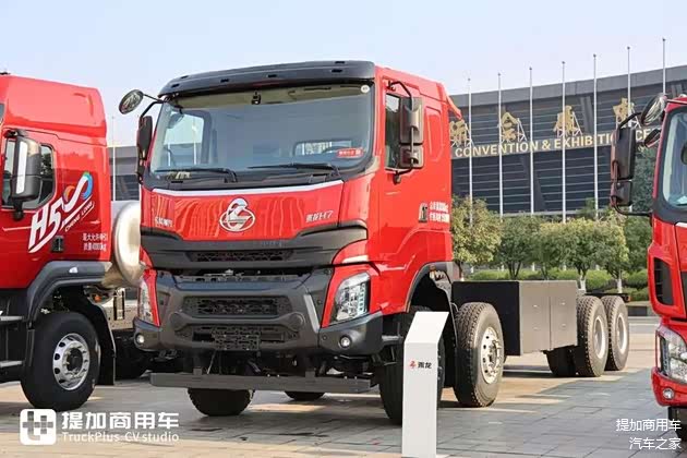 乘龙H5牵引车:定位资源类运输,6X4国六车型自重仅7.38吨,助力用户多拉快跑。搭载潍柴WP12系列发动机,最大480马力,匹配12挡手动挡变速箱和3.7黄金速比,符合资源类运输对车辆耐造、动力强、路况适应性强的需求。