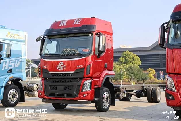 乘龙H5极限自卸车:超强版本4X2自卸车,驾驶室升级乘龙H5重卡级别大空间驾驶室,竞品普遍窄体中卡驾驶室。搭载玉柴YCS07系列发动机,最大300马力,匹配法士特12挡变速箱,后桥25吨轮减桥,速比5.921,前桥升级9吨桥,加大方向盘,11片钢板,后桥12+9片,300(8+8)大梁,吊打业内两轴自卸车。