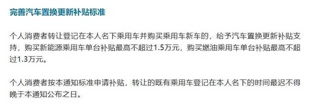需要注意的是,符合以旧换新标准的车辆,需要在1月8日前登记在本人名下的机动车,现在再去过户是来不及了。