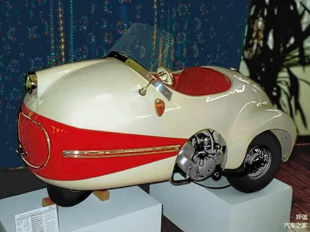 1956年,正在经历泡泡车(Bubble Car)的全盛期,德国设计师埃贡•布鲁奇制作的超小型三轮车,1956年在国际自行车和摩托车展览会上亮相。鸡蛋形状的车身由玻璃纤维制成,长1.7米,宽只有0.88米,重量也只有78kg。