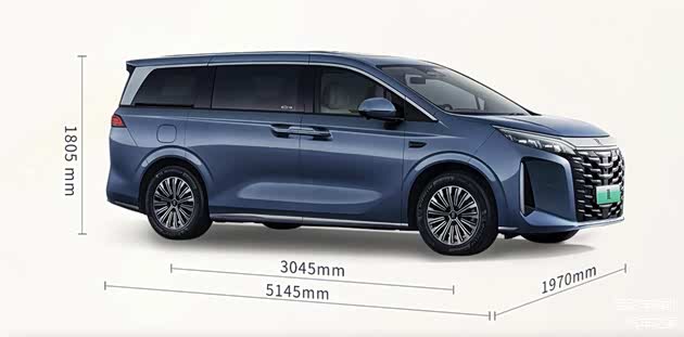车身:长宽高分别为 5145mm/1970mm/1805mm,轴距为 3045mm。100km 版本整备质量为 2470kg,180km 版本为 2650kg,装载质量为 575kg。