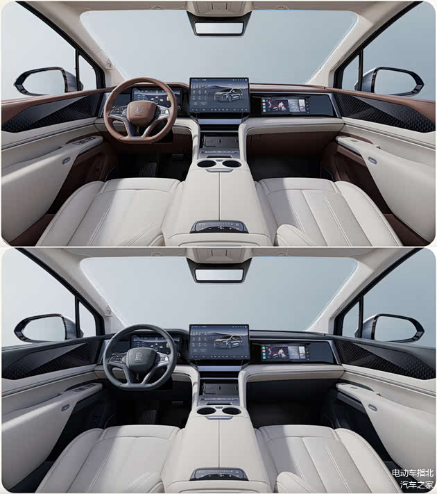 内饰颜色:檀棕米双色内饰和远山黛双色内饰(下)两种选择,均免费。