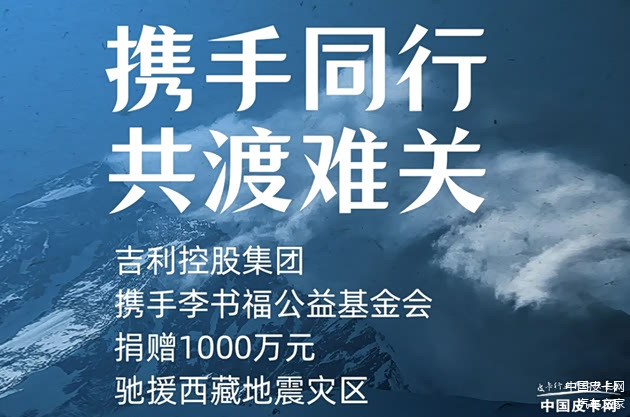 据吉利控股集团微信公众号8日消息,吉利控股集团携手李书福公益基金会向中华慈善总会捐赠1000万元,用于西藏受灾地区的紧急救援、应急物资采购、灾后恢复重建等工作,并将持续关注救援情况,为受灾民众抗灾、重建、安然过冬尽献绵薄之力。