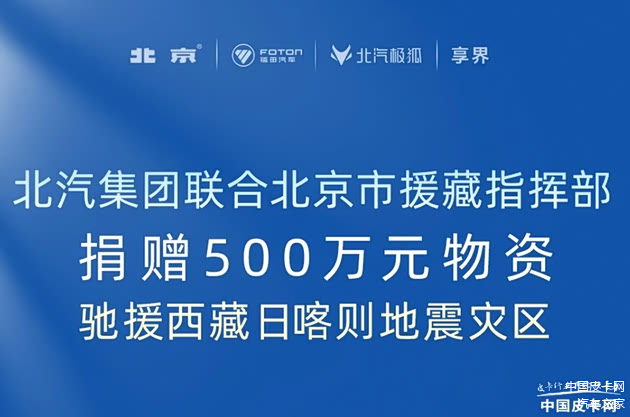 1月9日,北汽集团宣布,集团联合北京市援藏指挥部,携北汽旗下品牌北京汽车、北汽福田、北汽极狐、享界汽车向灾区捐赠救护车、越野车、皮卡车等救援车辆及物资合计500万元,用于西藏日喀则受灾地区的紧急救援与灾后重建工作。