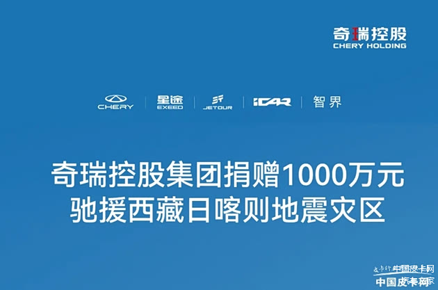 1月8日,奇瑞控股集团对外发布消息,决定通过中华慈善总会捐赠1000万元现金,用于西藏地震受灾地区的紧急救援与灾后重建工作,同时携手旗下子品牌全力为当地救灾和灾后恢复提供支持与帮助。