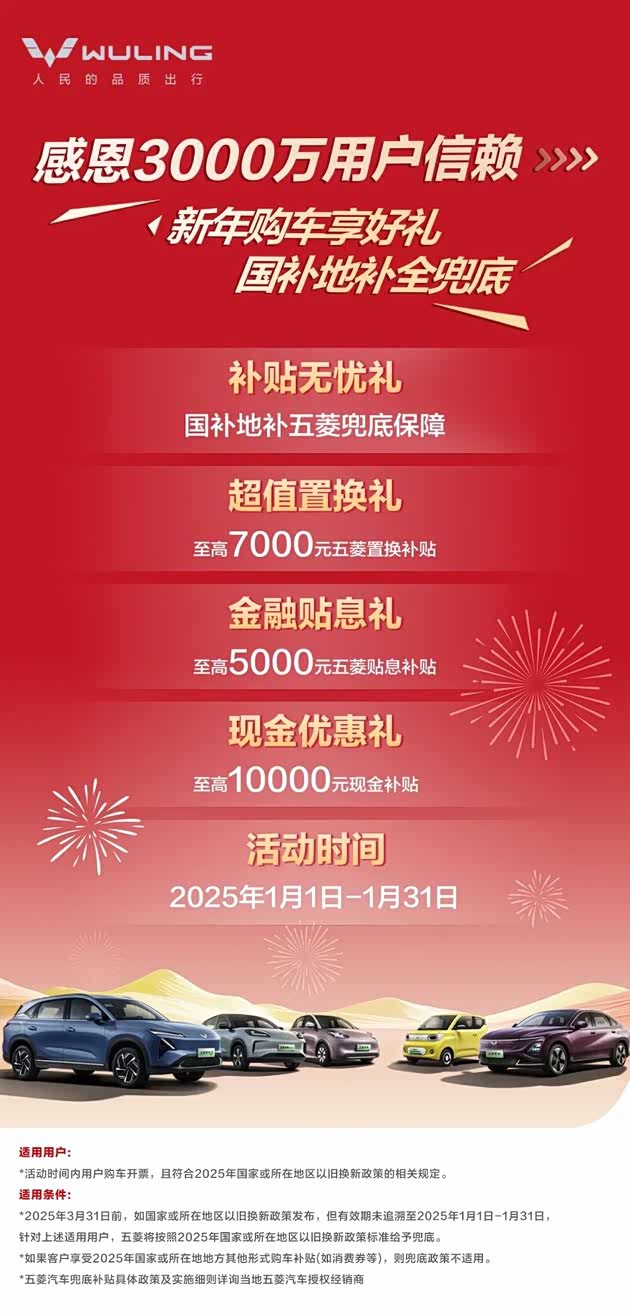 对于广大消费者来说,2025 年五菱的这一系列优惠政策,无疑是新年收到的最好礼物。而对于五菱来说,这仅仅是其在 2025 年冲击更高目标的第一步。在未来的日子里,五菱能否凭借这些优势改写车市格局,让我们拭目以待。相信在新的一年里,五菱将以其强大的实力和创新的精神,在汽车市场中创造更多的辉煌,为消费者带来更多的惊喜。