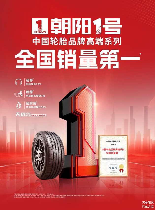 2024年,全球领先的资本市场行业顾问弗若斯特沙利文根据上一年度中国轮胎市场,各中国轮胎品牌的高端系列在中国内地(不含港澳台)的销量做出的一项行业调研显示,朝阳1号成为中国轮胎品牌高端系列全国销量第一,彰显了1号轮胎在中国高端轮胎上的引领地位。