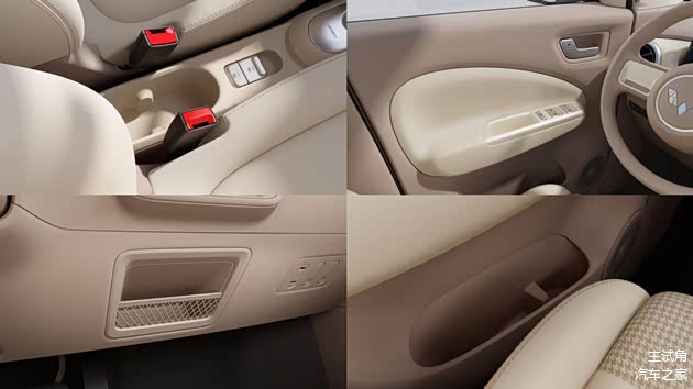 除了比较宽敞的乘坐空间和四门布局,为了方便乘客,宏光MINIEV四门版还在车内设计了19处储物空间,这些储物空间分别采用挂钩、网兜、储物格等设计,用户打包奶茶后可以挂在挂钩上;孩子的玩具可以放在网兜里;随身的钱包还能放进储物格中。