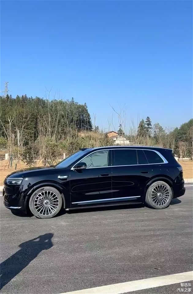 车身侧面依旧是比较彰显大气效果的造型,车窗边框和侧裙的位置加入有镀铬饰条,并采用半隐藏式门把手、电吸门和21英寸密辐式轮毂,也可以选装红色刹车卡钳。车身尺寸方面,新车申报的长宽高分别为5190/1999/1795mm,轴距为3105mm,与理想L9较为接近。