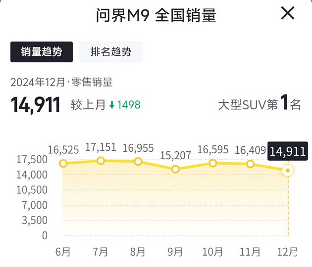 问界M9上市仅一年,累计销量已突破15万辆,超过理想L9,成为大型SUV市场的销量冠军。而问界M8则是为了填补问界M7和问界M9之间的市场空白,未来将会和理想L8展开竞争,价格应该会在40万级。如果你想买问界M9,但又预算有限的话,不妨等等小一号的问界M8。