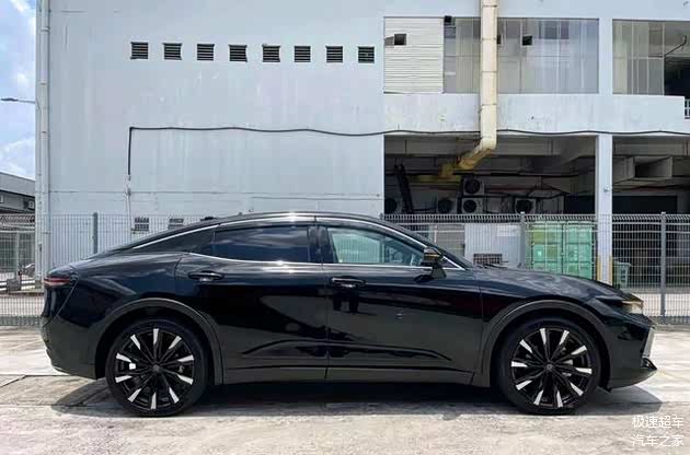 车身侧面,修长而流畅的线条展现出了优雅的气质。独特的溜背式设计,不仅降低了风阻,更赋予了车辆一种动感的姿态。黑色的轮毂搭配低扁平比的轮胎,进一步强化了运动感。而车窗周围的黑色装饰条,则与车身整体的黑色风格相得益彰,营造出了一种浑然一体的视觉效果。