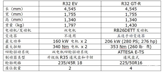 虽然R32 EV的调校和开发仍在进行中,但团队的目标并不是超越,而是匹配原版GT-R的性能——280 PS(206 kW)的输出功率和353Nm的扭矩。