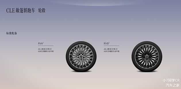 轮毂方面,CLE 260轿跑车/CLE 260敞篷轿跑车/CLE 300 4MATIC动感型轿跑车使用了19英寸AMG多辐轻合金轮毂(前245/40 R19,后275/35 R19);CLE 300 4MATIC豪华型轿跑车/CLE 300 4MATIC敞篷轿跑车使用了19英寸AMG多辐轻合金熏黑轮毂(前245/40 R19,后275/35 R19)。