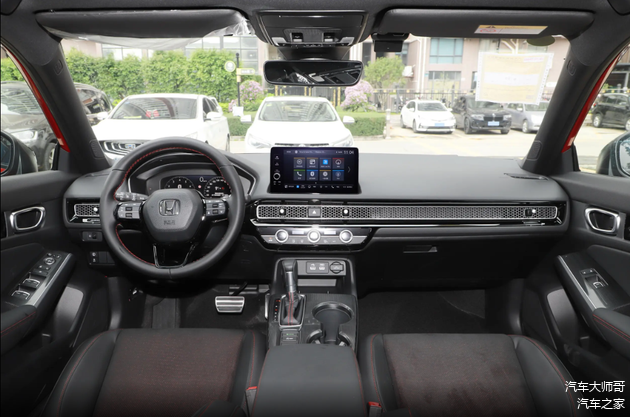 内饰方面:本田思域的车内采用了对称式设计,9英寸中控显示屏+10.2英寸液晶仪表盘则为车内营造出了一些科技感,屏幕的显示效果还是很细腻的,这支持多种显示模式切换。而空调出风口采用横向贯穿式设计,并加以蜂窝装饰罩造型,空调温度和风量旋钮做工精致,按键+旋钮的调节方式很符合日常使用习惯,即使是驾驶车辆时,也可以很方便的盲操作。